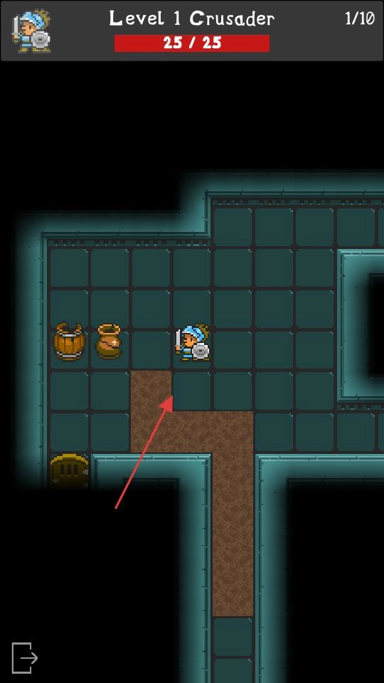 1. 踏入地牢后,操控角色移动进行探索,注意木桶和陶罐,打破它们或许能获得道具,依照箭头的指示推进Level1关卡。