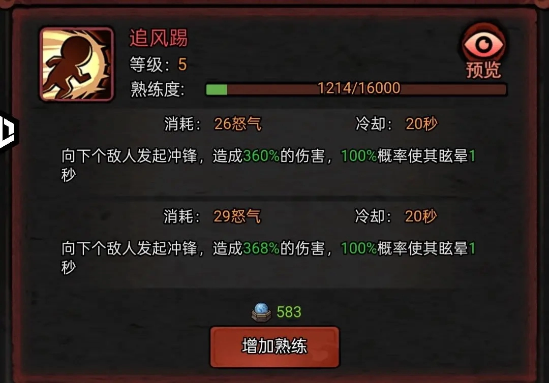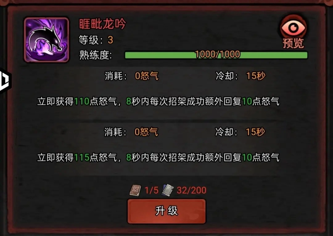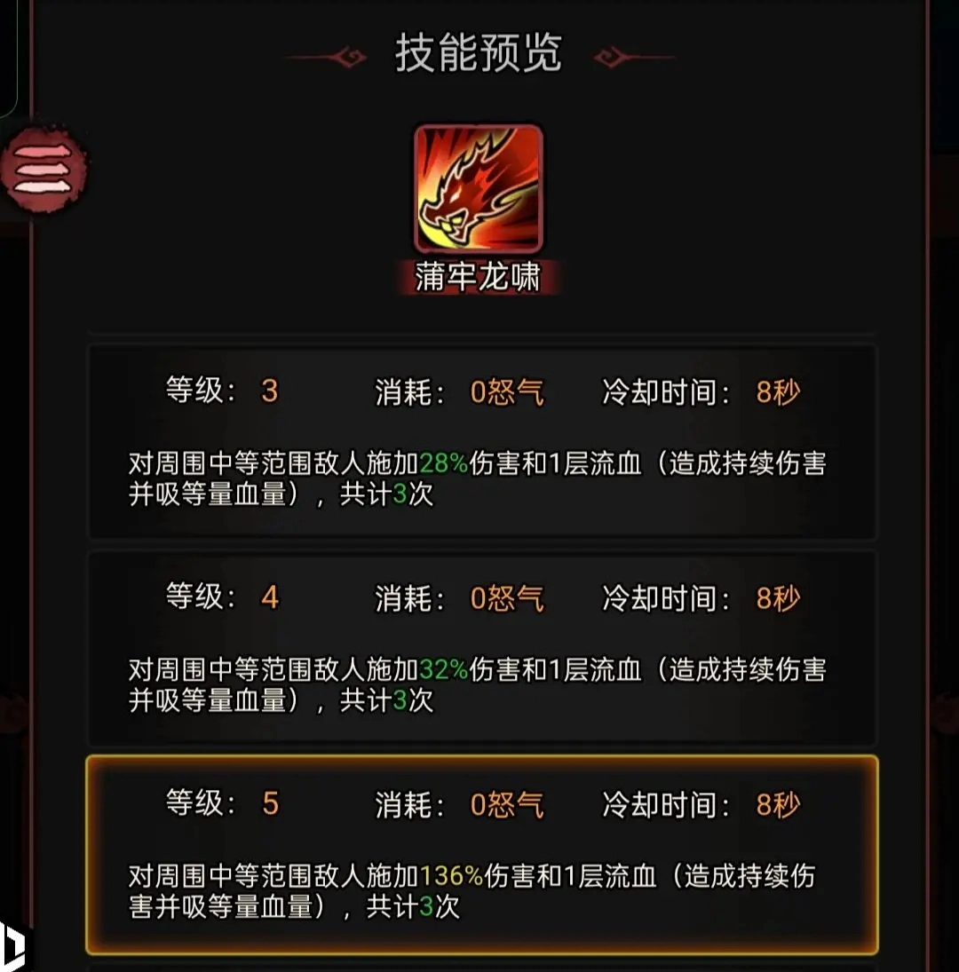 无需消耗即可爆发怒气,无论处于何种情景,先手时务必释放,否则后续技能无法施展。