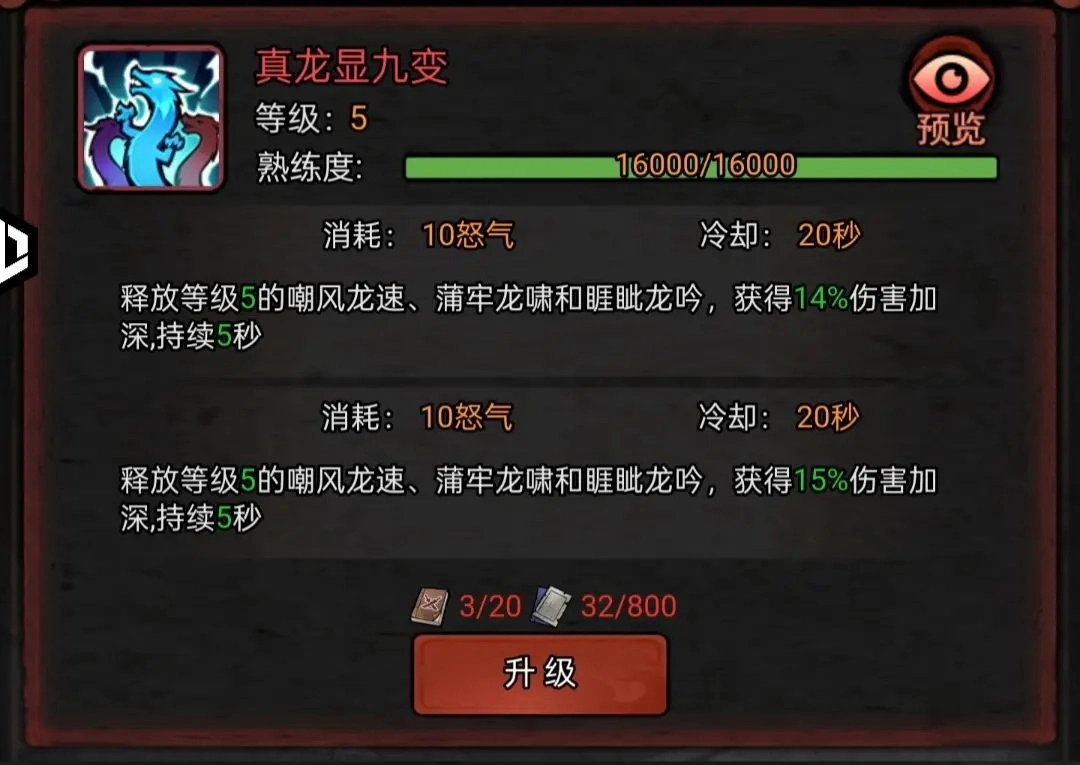 唯一真神,买一赠三,每5级提升三个技能的等级,集CD短、消耗低、爆怒气(龙吟)、吸血、范围伤害、加攻速于一体的神技!