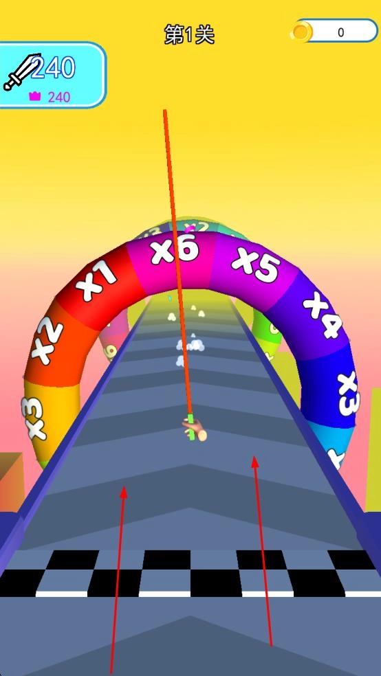 3、冲刺彩色倍数拱门,抵达黑白格终点,完成关卡挑战。
