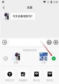 5、要是想一人扮演两个角色来模拟聊天内容,仅需点击成员头像就能完成切换。
