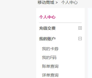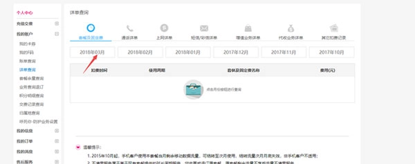 2. 前往个人中心,在左侧导航栏里,点击“我的账户”,进而找到“详单查询”。