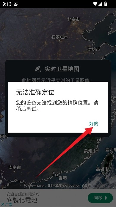 4、接着来到卫星地图界面,如图片呈现的那样,点击右下角的蓝色按钮,就能访问预报图。