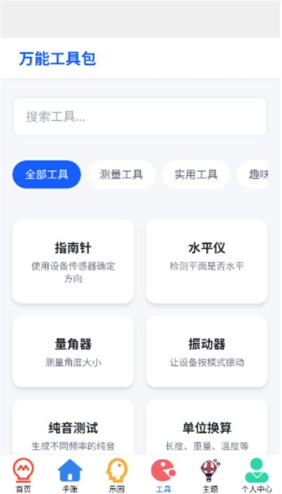 5、工具页包含多种实用工具,像指南针、量角器等等。