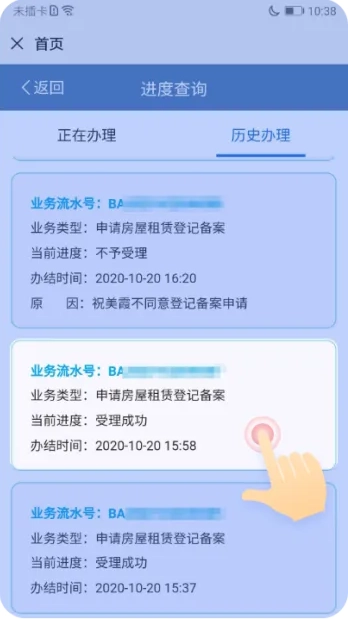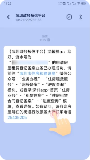 ⑥街道完成办理后,通过短信告知所有出租方及承租方办理结果。出租方/承租方可以进入“进度查询”板块,查看具体办理结果。