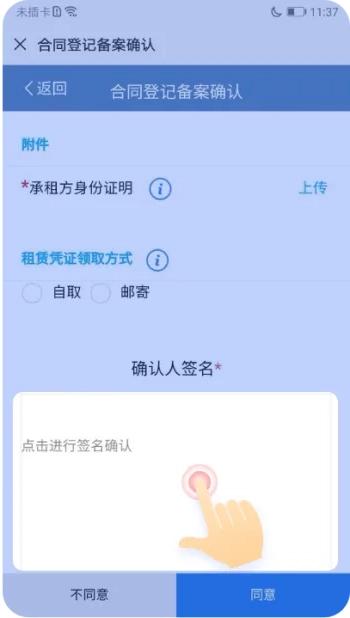 ⑤其他出租方或承租方收到确认短信后,进入“签字确认”界面,查找对应的流水号,并进行签名确认。