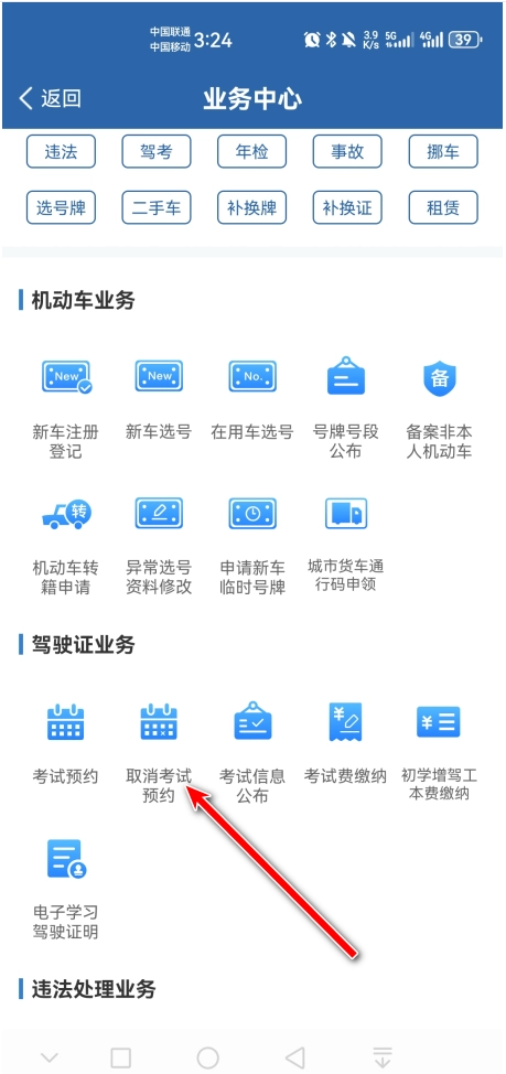 2. 点击“取消考试预约”,随后按照软件的提示进行操作。