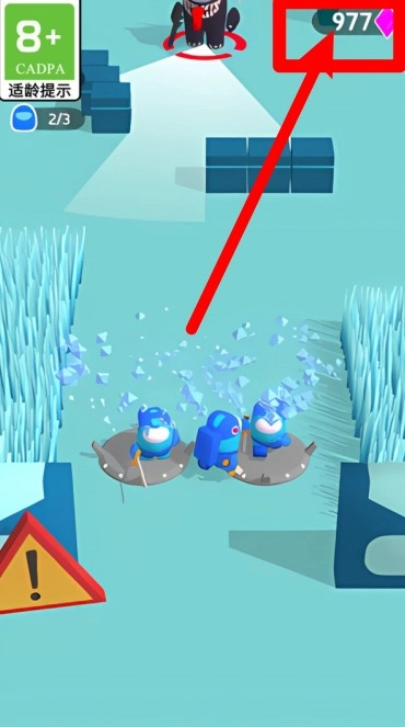 1.左上角显示宝石数量,当前数值为977,宝石是玩家闯关过程中收集的重要资源,可以用于兑换角色皮肤和解锁新的玩法。