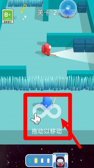 3. 玩家可通过拖动屏幕来操控下方角色移动,灵活操作是闯关的关键所在。只有避开陷阱并顺利抵达终点,方可获得胜利。