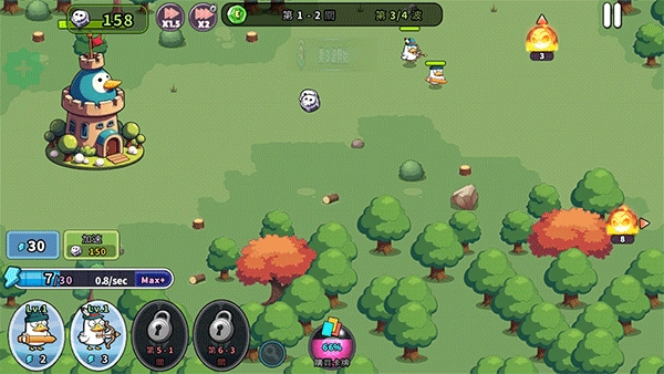 2、进入游戏以后,点击左下的鸭子,召唤鸭子士兵抵御敌人的进攻