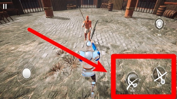2.屏幕右下角的攻击按钮可释放不同的技能动作,玩家需根据战况灵活点击,打出连贯动作完成致命的精准打击。