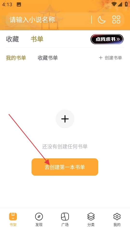 2、在书单页面,能看到我的书单和收藏书单分类,要是还没创建过书单,点击去创建第一本书单按钮,就可以开始创建属于自己的书单,把喜欢的书籍整理到一起,方便后续查看。