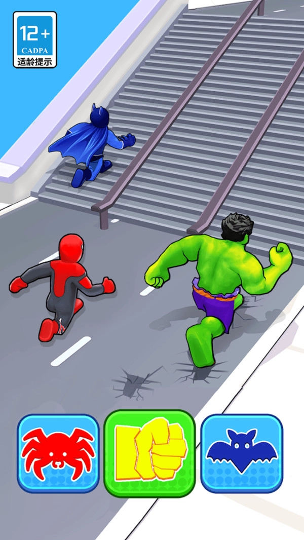 2.跑酷途中会解锁多种技能按钮,合理选择并使用强力技能,能帮助你更快甩开对手并顺利冲刺到终点。