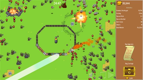 敌方的兽人如潮水般从各个方向蜂拥而至,他们妄图一举摧毁无限动力发生器!好在,每一个兽人身上都带着一块硕大的宝石,这些宝石卖掉后能换来金币。身为指挥官,你的使命便是用金币购置新的火车车厢,以此助力保卫发生器。火焰喷射器车厢、狙击炮车厢、加农炮车厢、电磁炮车厢,还有数十种别的类型的车厢,都能买入并添加到火车之上,从而强化防御能力。
