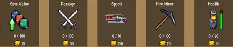 3、在商店中购买升级至关重要!提升宝石的价值,让每颗宝石能换取更多金币,并雇佣矿工自动为你生产更多宝石。