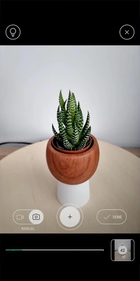2、然后,咱们随便找个小一些的物体试一下。比如这一盆小植物。拍摄的时候,光线要自然、同时背景如果以白墙或白纸为背景,效果更好。