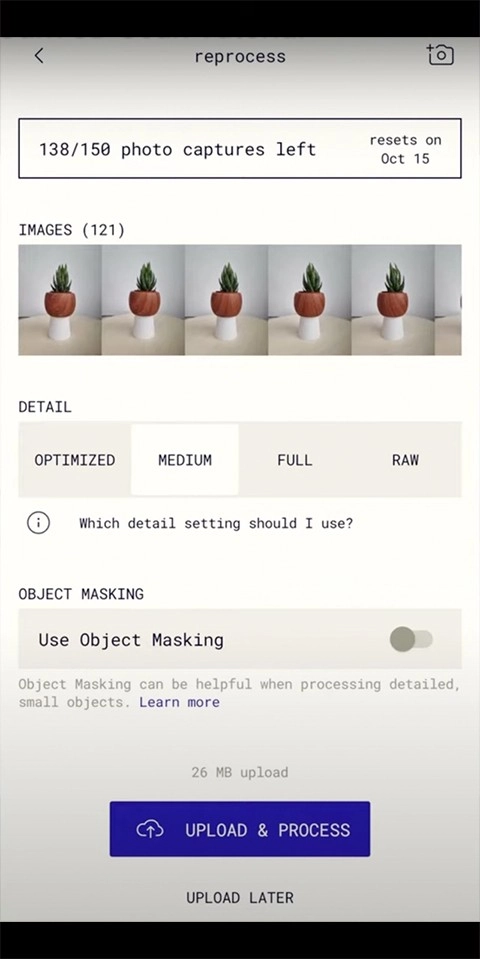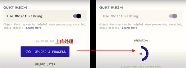 4、这时,我们点击那个紫色的按钮【 UPLOAD & PROCESS 】,意思是上传并处理,那么它就会把我们刚刚拍摄过的照片进行加工处理: