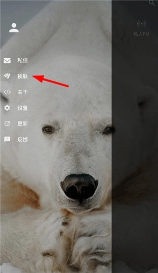 1、打开倒带音乐,点击左上角的横杠,然后选择“换肤”。