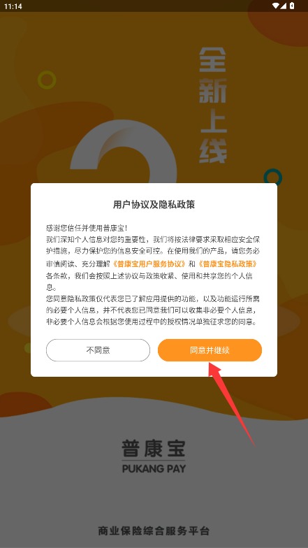 1首次使用时,请先阅读平台的服务条款和隐私政策,确认无误后请点击“同意并继续”按钮以进入应用。
