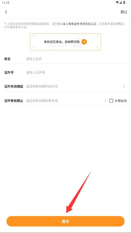 4、根据指引拍摄身份证照片,填写证件信息和有效期,确认无误后提交即可完成激活。