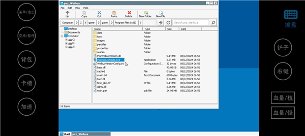 1. 打开模拟器,在其中依次找到路径C盘 - game - game - Program Files (x86) - pvz - Weihua ,然后找到PlantsVsZombies.exe文件,通过它来启动游戏。