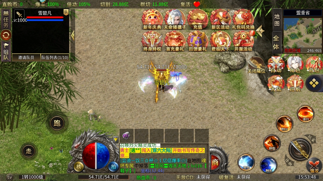 3、副本与限时活动:游戏内设有多种副本玩法,像跨服激战、世界BOSS、闯天牢等,这些都需要玩家彼此协作配合,共同攻克难关,从而获取丰厚奖励。此外,还有资源抢夺、跨服竞技等各类限时活动,进一步增添游戏的趣味性与挑战性。