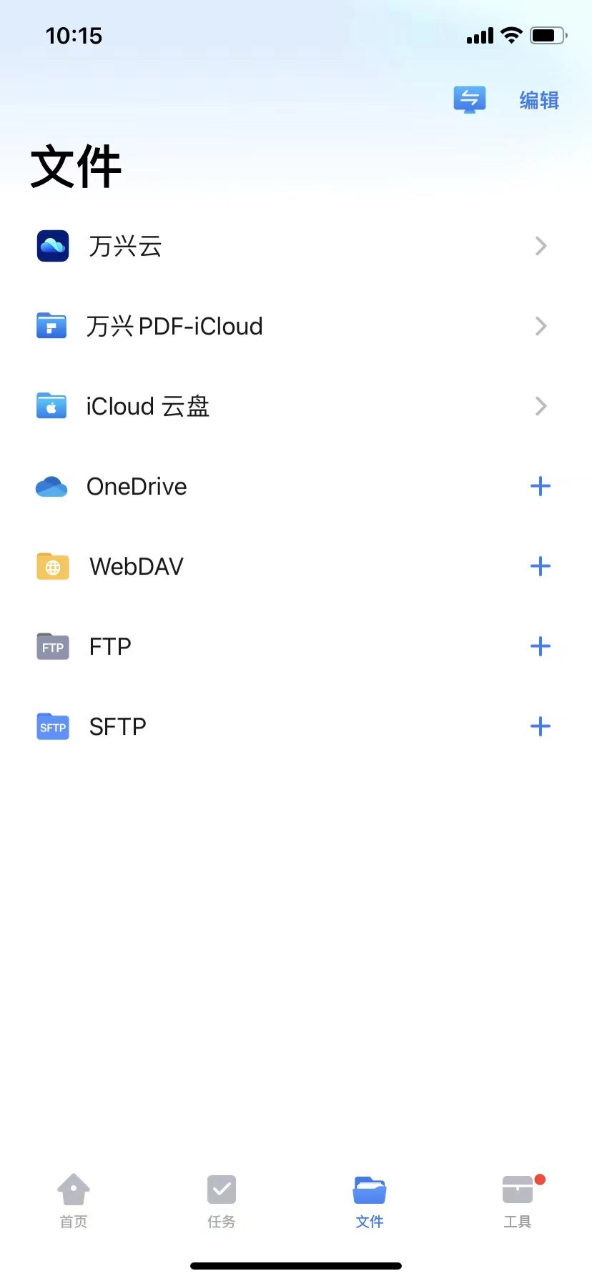 4、于文件栏目,能够打开并查看万兴云、云盘、OneDrive、WebDAV、FTP、SFTP等文件夹里的文件。