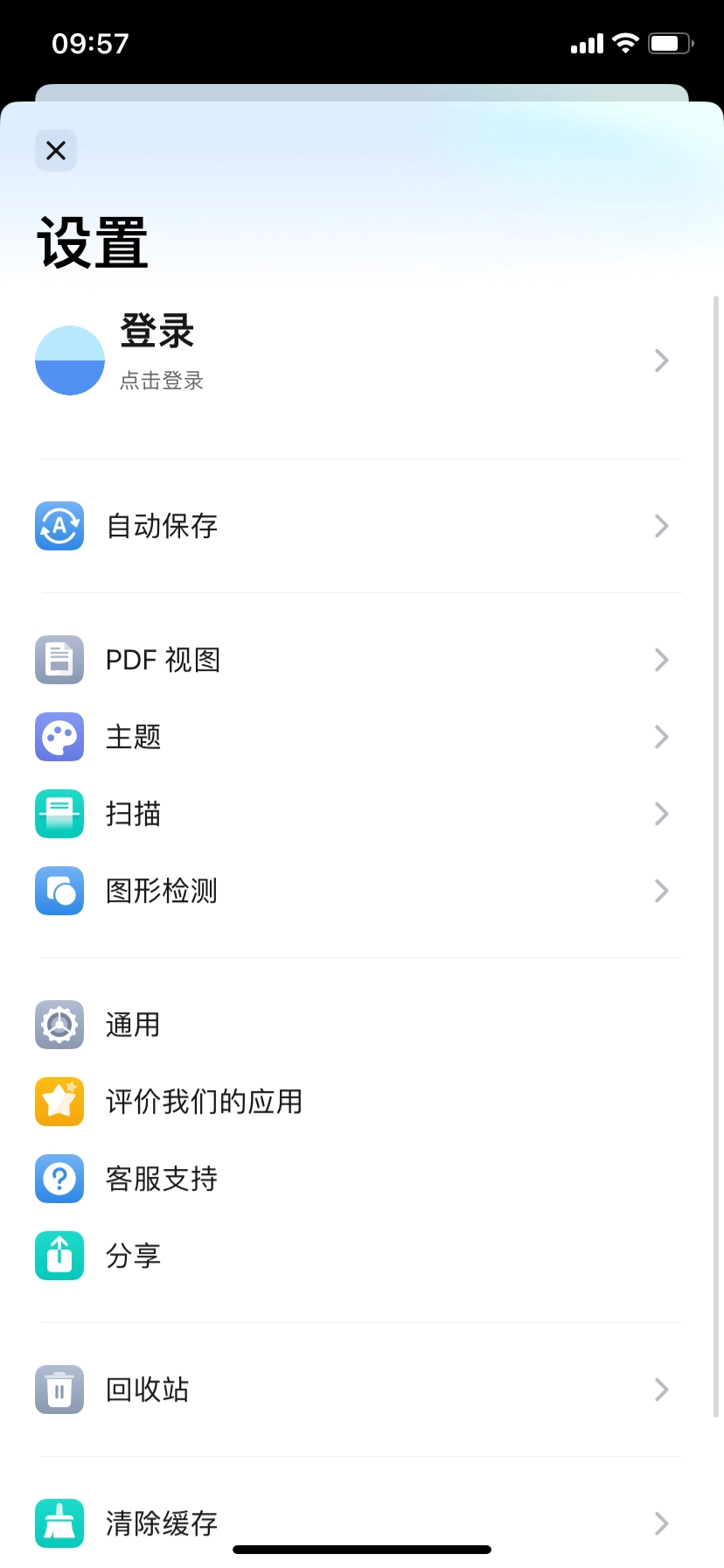 6、于设置界面处,用户能够依据自身喜好与习惯,对登录、主题、扫描、检测、通用等功能展开设置。以上便是万兴PDF编辑器的使用方式。
