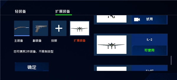 1. 在装备搭配中点击扩展装备,其中的飞机,玩家需观看广告方可获得。