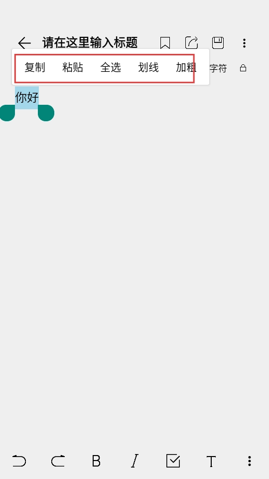 2、编辑标题时选文字,弹出复制,粘贴等编辑功能,操作文本。