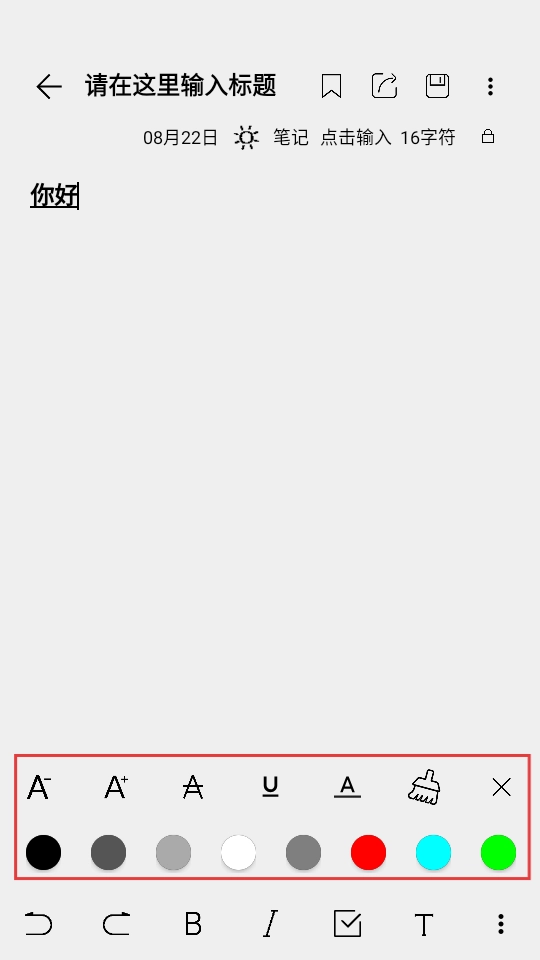 1. 在笔记页中,点击底部的“+”号,即可新建记事,并进入编辑界面。