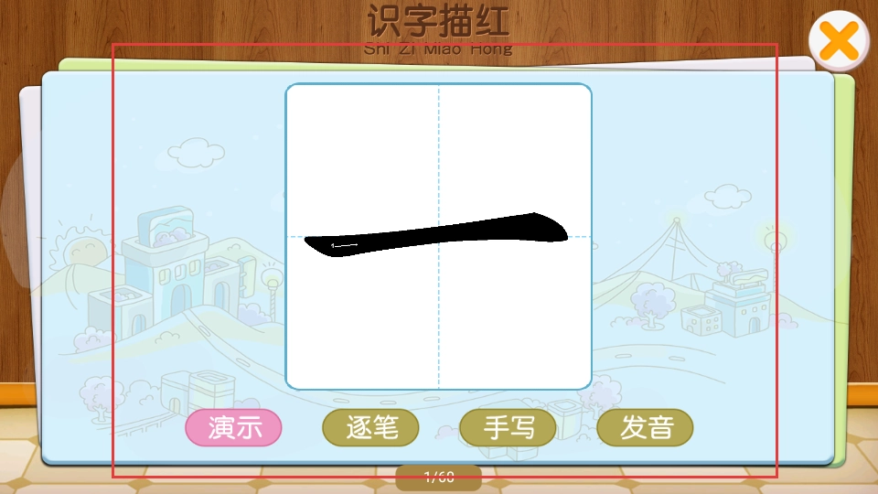 2、书写描红操作:进入书写模块后,宝宝可按照引导一笔一划进行汉字描红练习,逐步掌握正确的汉字书写笔画顺序。