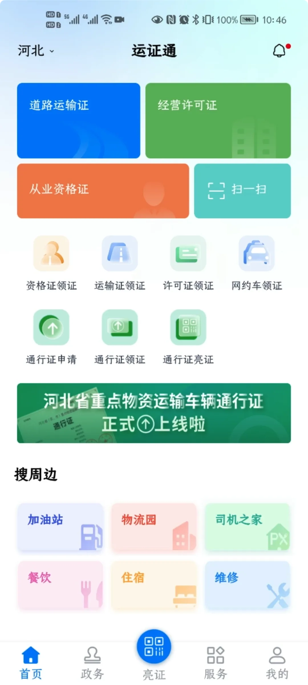 运证通APP作为道路运输电子证照服务平台,以交通强国战略为依托,深度整合多省政务资源,现已与京津冀、山西、广西、新疆等全国十多个省市区的电子证照系统实现实时对接。此应用面向道路运输经营业户与从业人员,提供电子证照的申领、亮证、授权以及线上运政业务办理等一站式服务,用户只要完成实人认证,就能方便快捷地申领和管理证照。