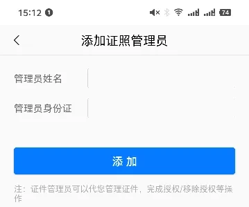 点击“证照管理员”,能够查看以及新增相应的证照管理员。