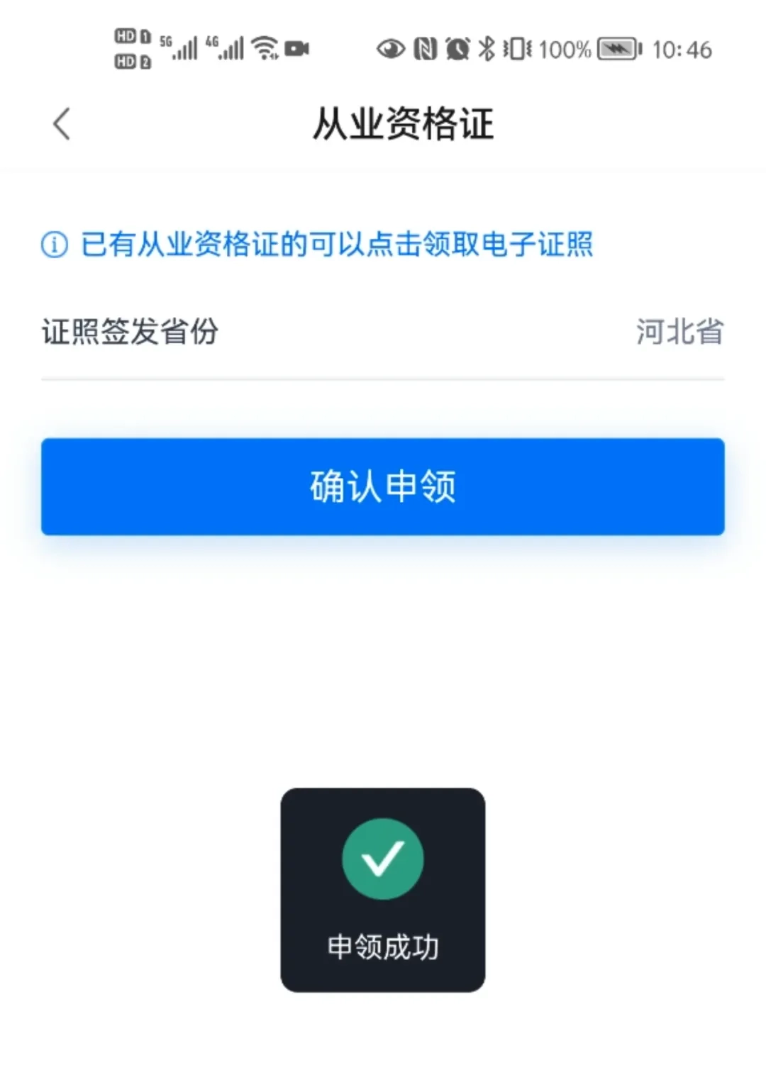 请挑选证照签发省份,接着点击确认申领选项,如此便能完成证照申领操作,随后进入证照列表页面。