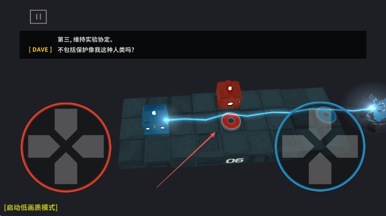 1. 进入游戏后,首先阅读屏幕上方的文字对话,以此了解游戏背景。接着,利用左侧的虚拟按键,操控红色方块朝着红色光圈的位置移动。