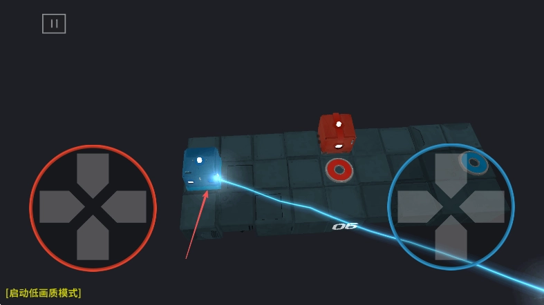 3、始终利用左右两侧的虚拟按键,分别操控红、蓝色方块移动,使其避开危险区域,达成关卡内规定的移动目标。