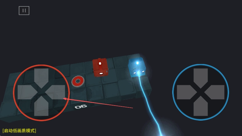 2. 通过右侧的虚拟按键来调整视角,观察蓝色方块,进而规划出一条路线,使得蓝色方块能够进入相应的光圈,以此触发机关。