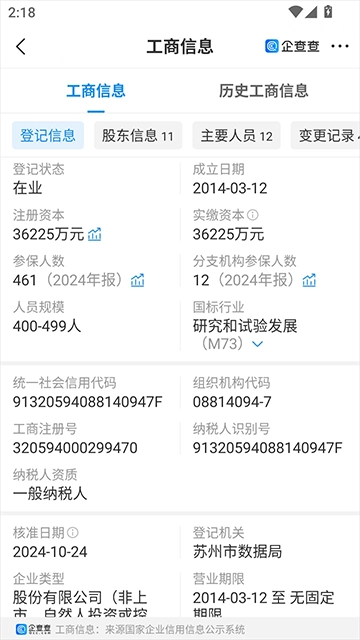 企查查APP是一款专注于企业信息查询的专业应用,为用户打造一站式查询服务体验。它汇聚了全球超5.8亿家企业的数据,几乎囊括了用户想要知悉的各类公司信息,助力用户全方位洞悉公司详情,像企业工商登记信息、实际经营状况、潜在周边风险、对外投资布局、企业年报内容、公司员工参保情况、知识产权归属、企业背景资料以及企业招标资讯等,都能轻松获取。