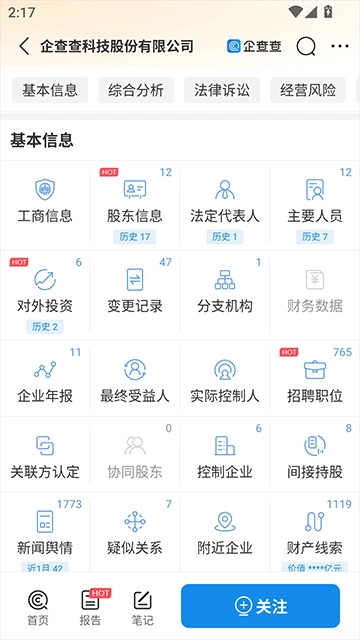 ● 企业背调:快速查询企业工商信息、风险公示、知识产权等,全面了解企业背景。