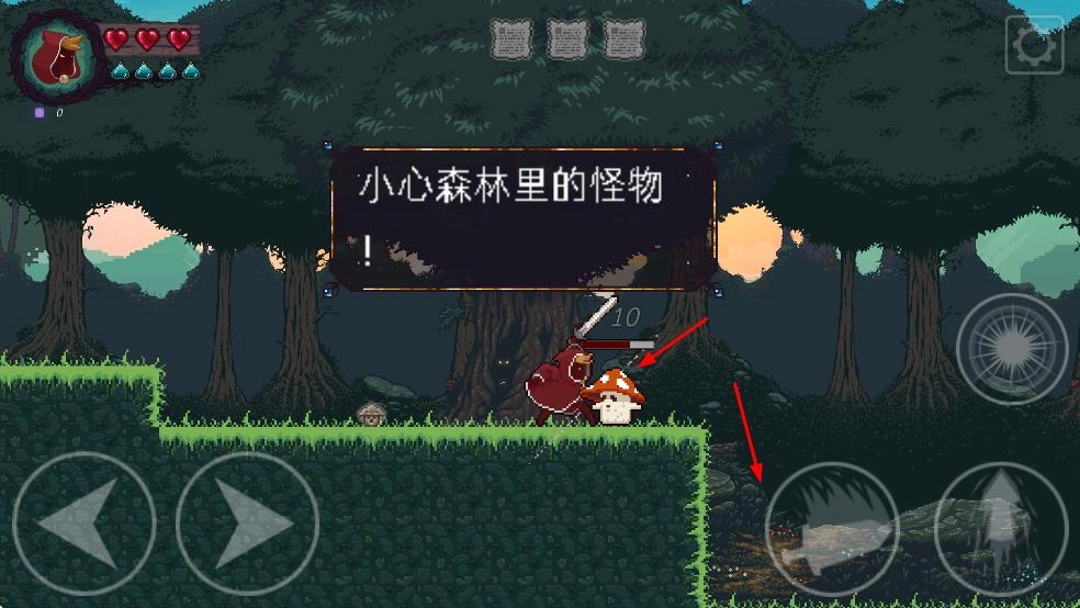 2、遭遇蘑菇怪等敌人,点击攻击键战斗,规避伤害,维持血量。