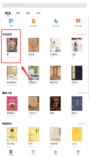 1、打开藏书阁APP后,可以在首页推荐或分类书库中浏览,并挑选感兴趣的小说作品。