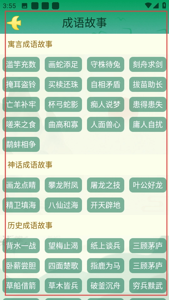 3、在成语故事页选感兴趣的故事,查看详情内容。