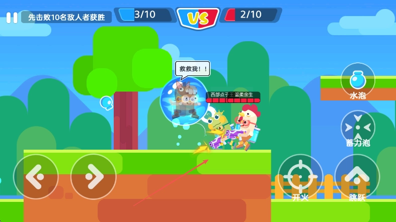 2、战斗中适时点击水泡键困住敌人,配合队友,集火攻击被困敌人,提升击败敌人的效率,增加击败敌人数量。