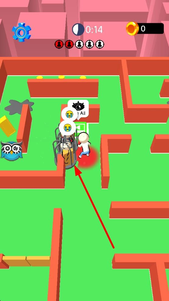 2、卡通萌趣画风:3D卡通角色的造型简洁且可爱,迷宫场景的色彩明快亮眼,追捕与躲藏过程中的动态表现十分生动,有效降低了竞技时的压迫感,极大地增添了休闲欢乐的氛围。