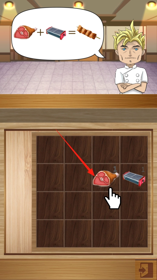 2、按照厨师的提示,在方格区域内对食材进行组合。通过拖动肉块至烤架,依据特定公式合成新的菜品,以此完成烹饪任务。在此过程中,学习菜品的制作逻辑,亲身体验食材的合成机制。