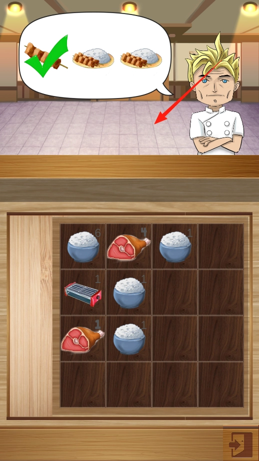 3、依照订单的提示,在方格内寻找与之对应的食材组合,把米饭、肉块等进行合理搭配,以满足订单的要求。完成配送工作,从而提升餐厅的经营效率,同时体验订单制作的独特玩法。