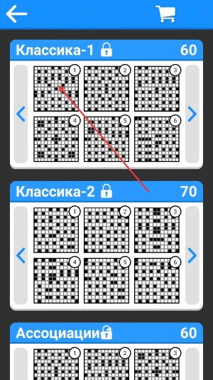 2、选【Классика-1】关卡,进入第1个填字游戏,开始挑战。