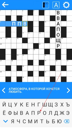 3、根据横向提示,从网格选位置,输入对应俄文单词,填充空格。