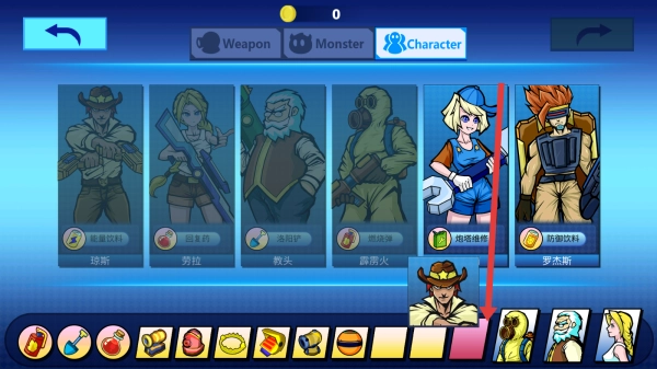 3、来到角色选择界面后,通过向下拖动的方式,挑选像罗杰斯这类合适的角色,并搭配好武器,为即将开启的峡谷冒险做好准备。